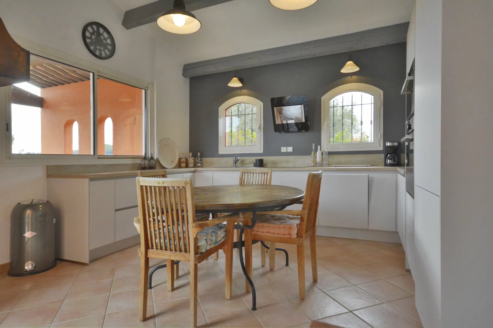 Near Valbonne : residential area, quiet, beautiful Provençal villa, enjoying a clear view, offering : entrance hall, large and bright living/dining room, equipped open-plan kitchen, laundry room, 3 bedrooms including 1 on one level and 2 bathrooms. Planted land of 2 694 m² with beautiful swimming pool area. Independent studio. Garage of 40 m².